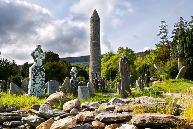 Im Zentrum der Wicklow Mountains, genauer im „Tal der zwei Seen“, dem Glendalough, gründete der Heilige Kevin im 6. Jahrhundert ein Kloster.