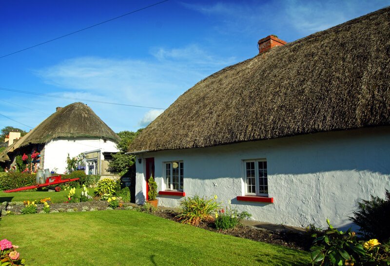 Einen ganz anderen Charme weist Adare auf. Mit seinen Stroh gedeckten, weißen, teils gelb gestrichenen Häusern und Cottages wurde das 700-Seelen-Nest schon mehrfach als das am besten gepflegte Dorf in Irland ausgezeichnet. Das Puppenstubenflair verdankt das pittoreske Fleckchen dem 3. Earl of Dunraven, der das Dorf für eine Gruppe von Siedlern aus der Pfalz errichten ließ. Diese waren von den Franzosen aus ihrer Heimat vertrieben worden und fanden hier ein neues Zuhause in den großen, Reet gedeckten Cottages.